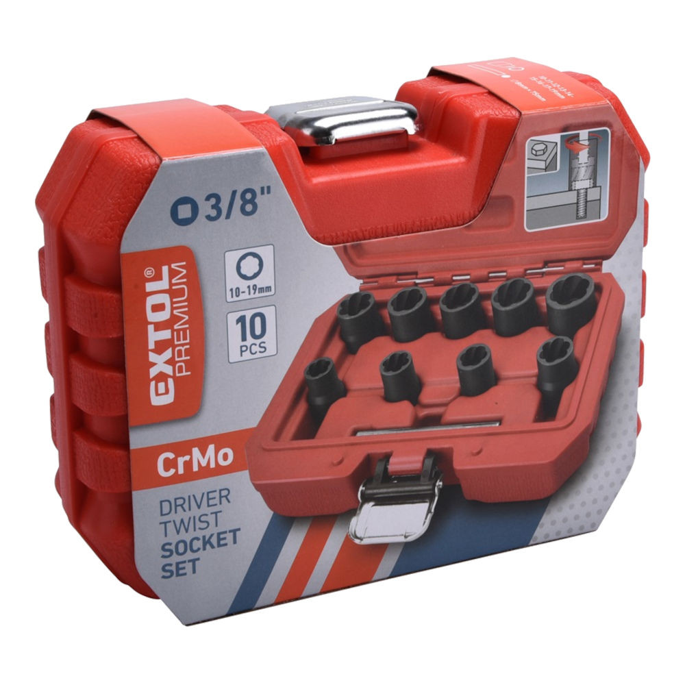Extol Premium TWIST csavarkiszedő készlet 9db-os, 3/8" befogás, kiütőrúd