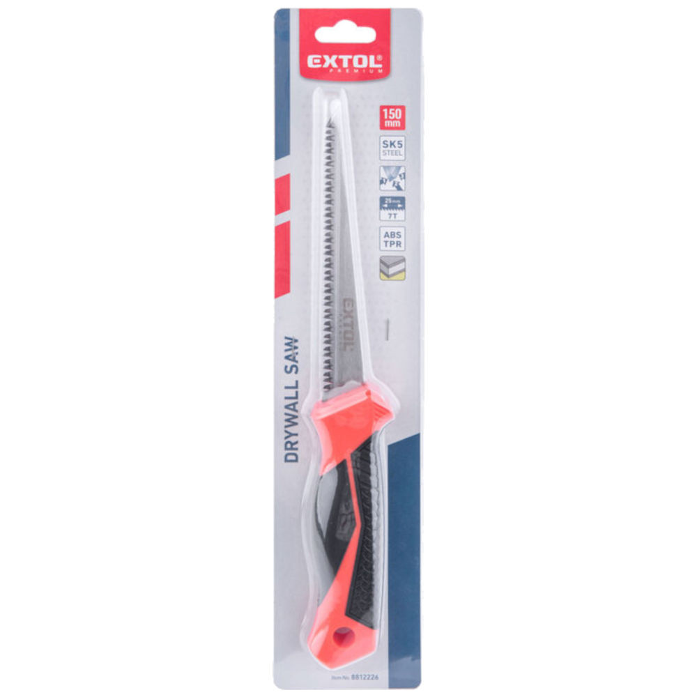 A 150 mm-es gipszkarton fűrész olyan kézi szerszám, amelyet kifejezetten gipszkarton lapok átvágására, kivágások készítésére fejlesztettek, ezért formája és fogazata a szárazépítés igényeihez igazodik. A rövid, kb. 150 mm-es pengehossz előnye, hogy a fűrész könnyedén irányítható, nem akad bele a mögöttes szerkezetekbe, és szűk helyeken, például profilok között vagy kész szerkezetek közelében is magabiztosan használható. A penge mangán-acélból nagy kopásállóságú szerszámacélból készül, edzett, élezett vagy háromszorosan edzett fogazattal, ami hosszú élettartamot és gyors előtolást biztosít még sűrűbb, keményebb lapokban is.