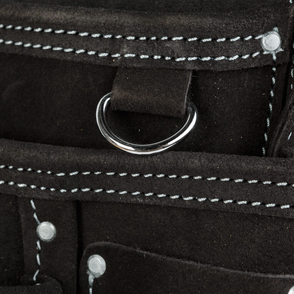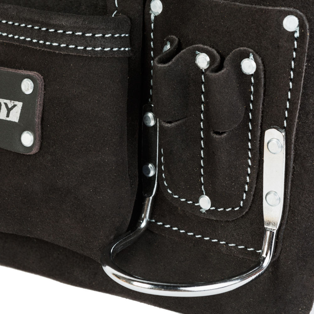 A kompakt 200 x 300 mm-es méret ellenére bőséges tárolóhelyet kínál: két nagy zseb fogók, csavarhúzók, mérőszalag vagy kisebb készletek számára ideális, míg a négy kisebb rekesz ceruzáknak, biteknek, jelölőknek vagy apró kiegészítőknek tökéletes. Két akasztóhurok kalapácsot, villáskulcsot vagy más hosszabb szerszámot rögzít biztonságosan, megelőzve a kiesést munka közben. A mellékelt öv max. 132 cm-ig állítható, így különböző testalkatokhoz igazodik, súlya mindössze 480 g, így egész napos viselésnél sem terheli meg a derekat.