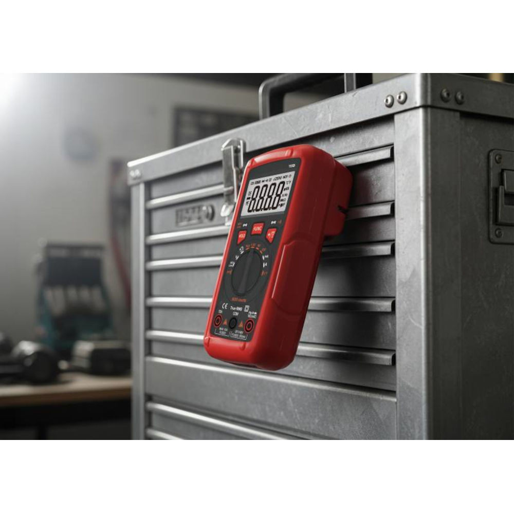 A beépített NCV (Non-Contact Voltage) funkció lehetővé teszi a feszültség alatti vezetékek érintés nélküli, gyors és biztonságos azonosítását, ami különösen hasznos falban futó, elrejtett kábelek esetén. A készülék ráadásul praktikus zseblámpával és mágneses tartóval rendelkezik, így sötét helyeken – például elosztószekrényben, gépházban vagy padláson – is kényelmesen használható, miközben a multiméter akár fémfelületre is rögzíthető, hogy mindkét kéz szabadon maradjon.