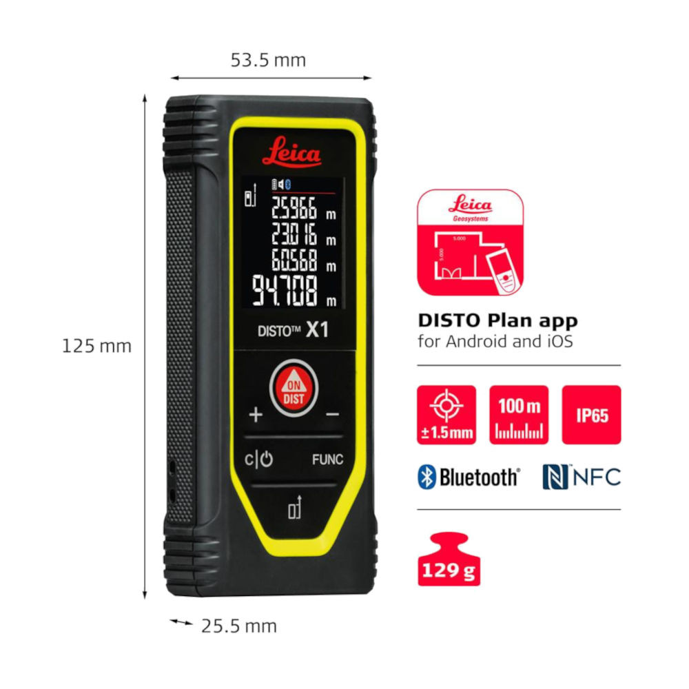 - Az olyan új funkciók, mint a térfogat és a festő funkció, tovább egyszerűsítik a mindennapi feladatokat, így a DISTO™ X1 kompakt, ellenálló és rendkívül praktikus mérőeszközzé válik.