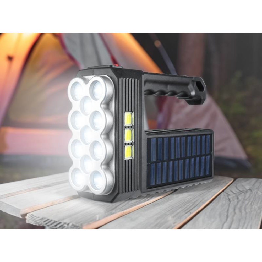 A túrázások és kirándulás lakalmával nem mindig van lehetőség a hálózati adapterek használatára és az elektromos eszközök töltésére. Ez a kézi zseblámpa napelemmel is elvan látva, hogy a beépített akkumulátort csak a napsugár segítségével tölthető legyen. A napon összegyűjti az energiáját és mindössze 6 órahossza elegendő a töltésre, majd azt a beépített akkumulátorban tárolja, így a készülék kábeles (adapteres) töltés nélkül is működhet. IP65-ös védettségi besorolás ütésállóságot és vízállóságot biztosít a zseblámpának, így még zord időjárási körülmények közt is használható.